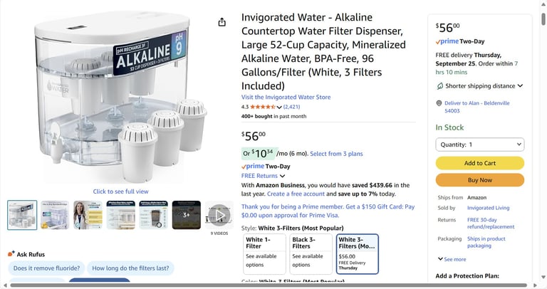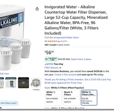 Amazon.com: Invigorated Water - Alkaline Countertop Water Filter Dispenser, Large 52-Cup Capacity, Mineralized Alkaline Water, BPA-Free, 96 Gallons/Filter (Black, 3 Filters Included): Home & Kitchen