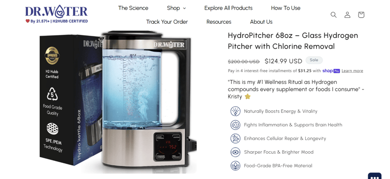 HydroPitcher 68oz – Hydrogen Water Chlorine Removal Pitcher | Dr. Water – Dr.Water
